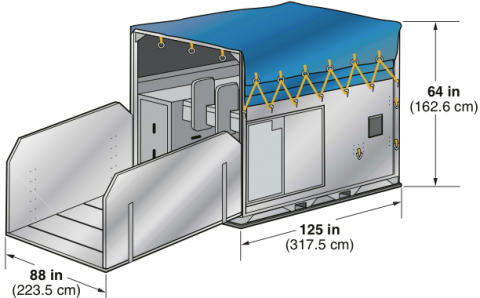 • Description: Full-width lower hold container. Door is canvas. Center post swings clear for loading. Refrigerated version has solid door.