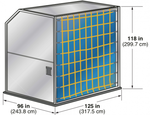 • Description: Main-deck upper contoured container. Door is canvas with built-in net door straps.